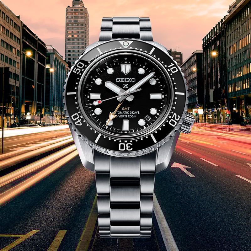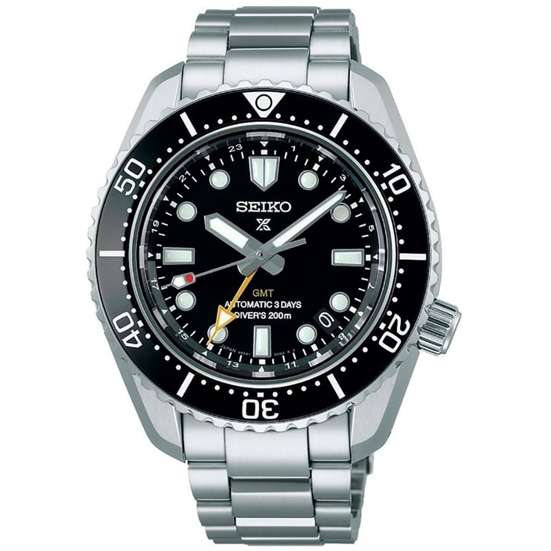 Seiko Prospex 1968 Heritage Diver’s GMT SPB383 watch. Seiko Prospex offers a completely natural harmony. 42mm steel case. Black dial. Automatic movement. Caliber 6R54. Functions: Hours, minutes, seconds indicator, date. Stainless steel bracelet.