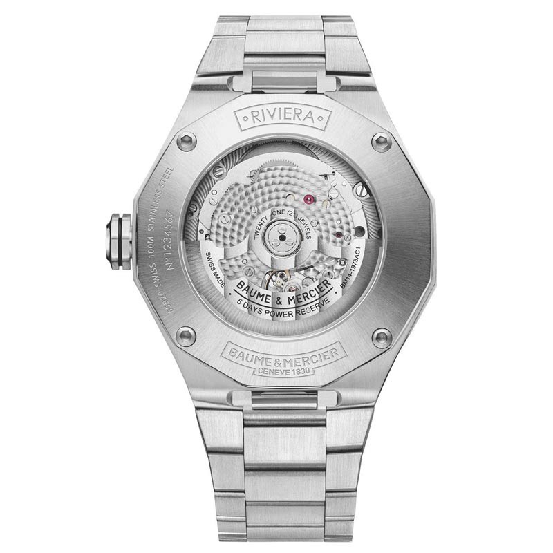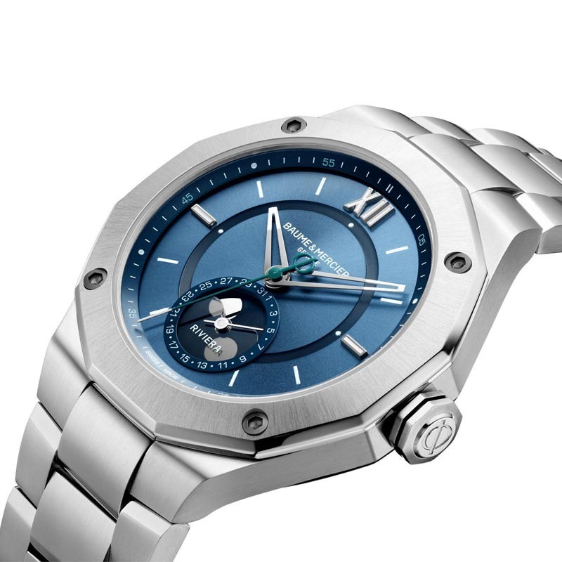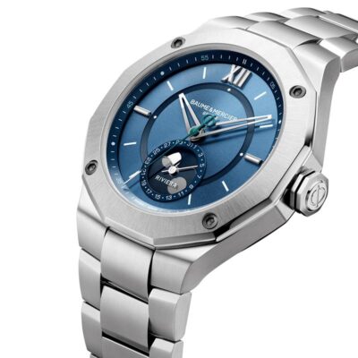 The Baume & Mercier Riviera M0A10682watch features an elegant design, displaying a blue dial. It features a stainless steel bracelet that ensures sturdiness and comfort. It has a polished and satin-brushed stainless steel case with a diameter of 43mm. It incorporates a Manufacture Baumatic automatic movement that provides a power reserve of approximately 120 hours. It is an elegant watch with an original design, ideal for strong personalities.