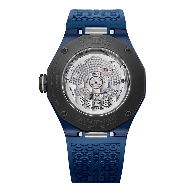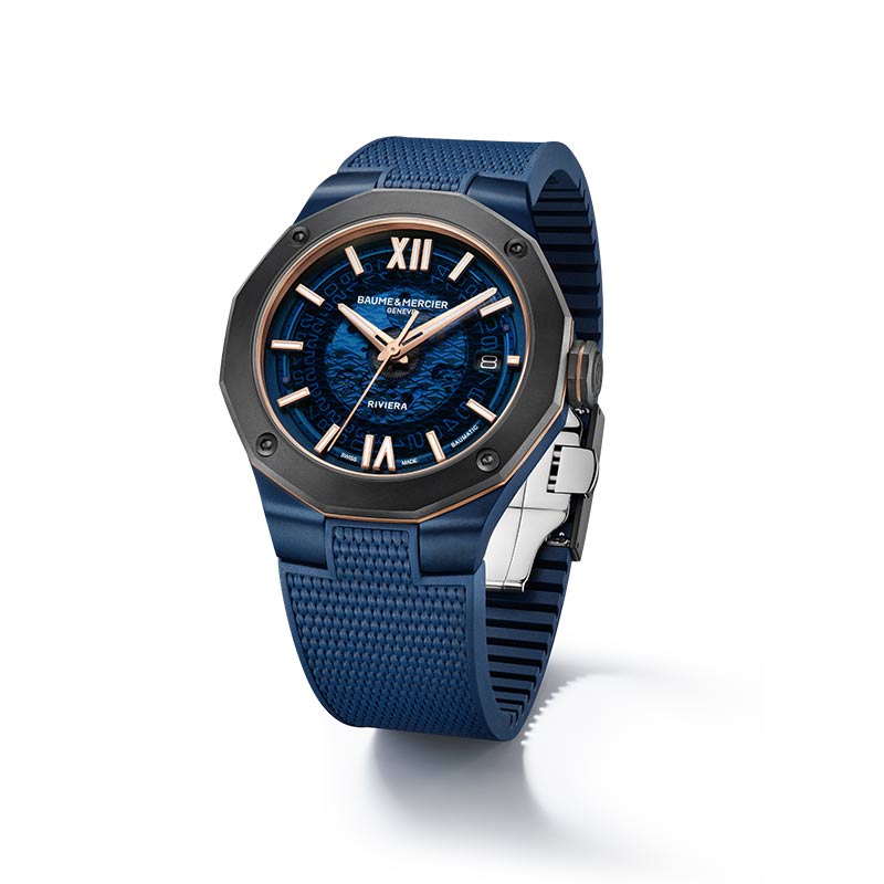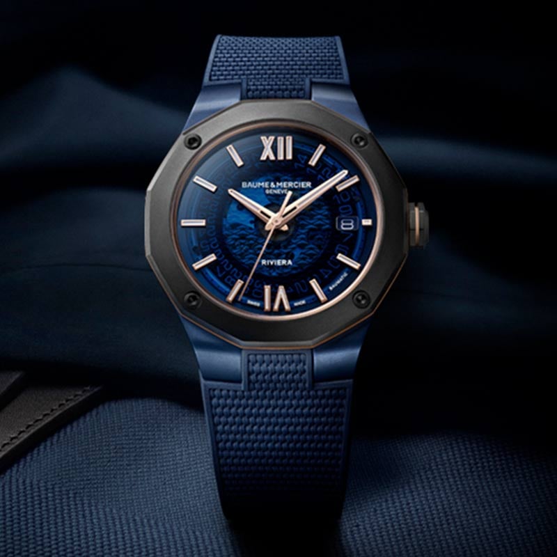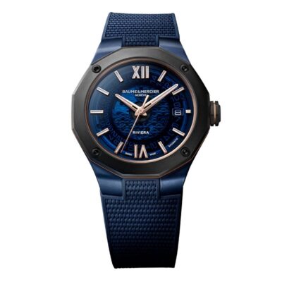 The Baume & Mercier Riviera M0A10769watch has an elegant design, which displays a blue dial. It features a blue rubber strap that ensures comfort and durability. It has a stainless steel case with blue PVD and titanium with a diameter of 42mm. It incorporates a Manufacture Baumatic automatic movement, which provides a power reserve of approximately 120 hours. It is an elegant watch with a sporty style, suitable for wearing on any occasion.