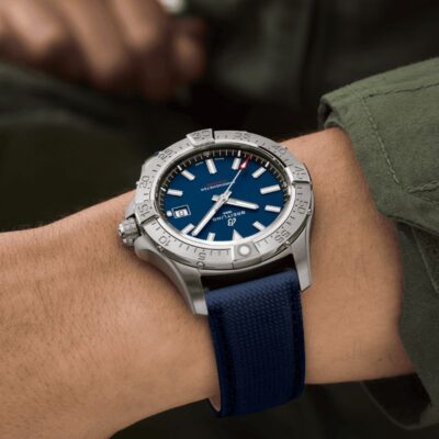 The Breitling Avenger Automatic 42 A17328101C1X1 watch has an elegant design, which displays a blue dial. It features a blue calfskin strap that ensures comfort and durability. It has a stainless steel case with a diameter of 42mm. It incorporates an automatic mechanical movement with caliber Breitling 17, which provides a power reserve of approximately 38 hours. The combination of comfort and functionality along with a sophisticated and modern aeronautical style make this Avenger Automatic the perfect watch to accompany you on any occasion.