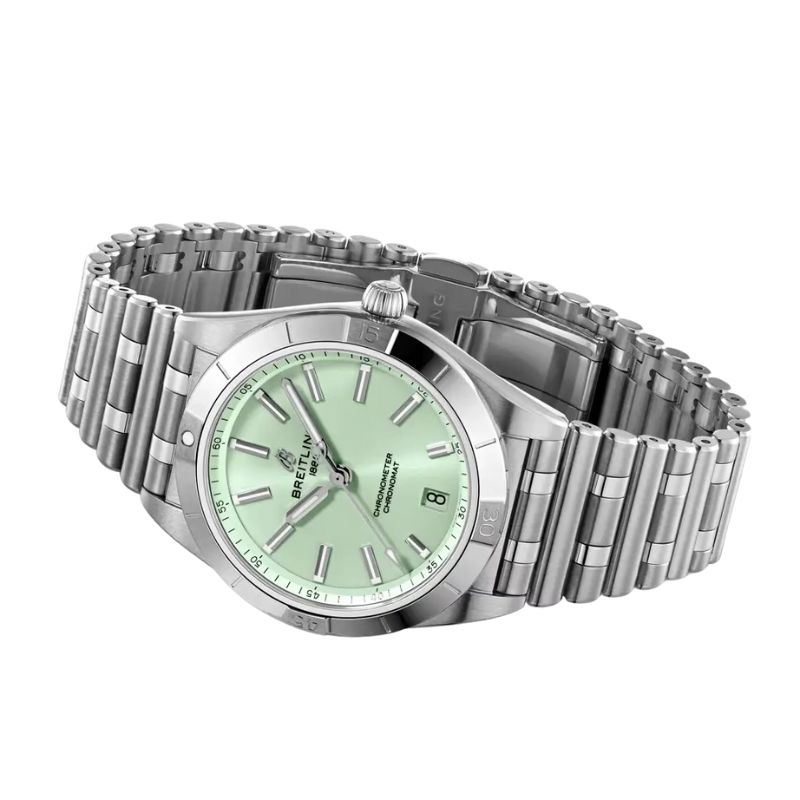 The Breitling Chronomat Automatic 36 A10380101L1A1 watch has an elegant design, which displays a green dial. It features a stainless steel bracelet that ensures comfort and durability. It has a stainless steel case with a diameter of 36mm. It incorporates an automatic mechanical movement with caliber Breitling 10, which provides a power reserve of approximately 42 hours. It is an all-terrain watch for any activity, belonging to the Chronomat collection, which occupies an important place in the history of Breitling.