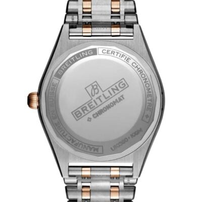 The Breitling Chronomat Automatic 36 U10380101A2U1 watch has an elegant design, which displays a mother-of-pearl dial. It features a stainless steel and 18k red gold bracelet that ensures comfort and durability. It has a stainless steel and 18k red gold case with a diameter of 36mm. It incorporates a self-winding mechanical movement with caliber Breitling 10, which provides a power reserve of approximately 42 hours. It is an all-terrain watch for any activity, belonging to the Chronomat collection, which occupies an important place in the history of Breitling.