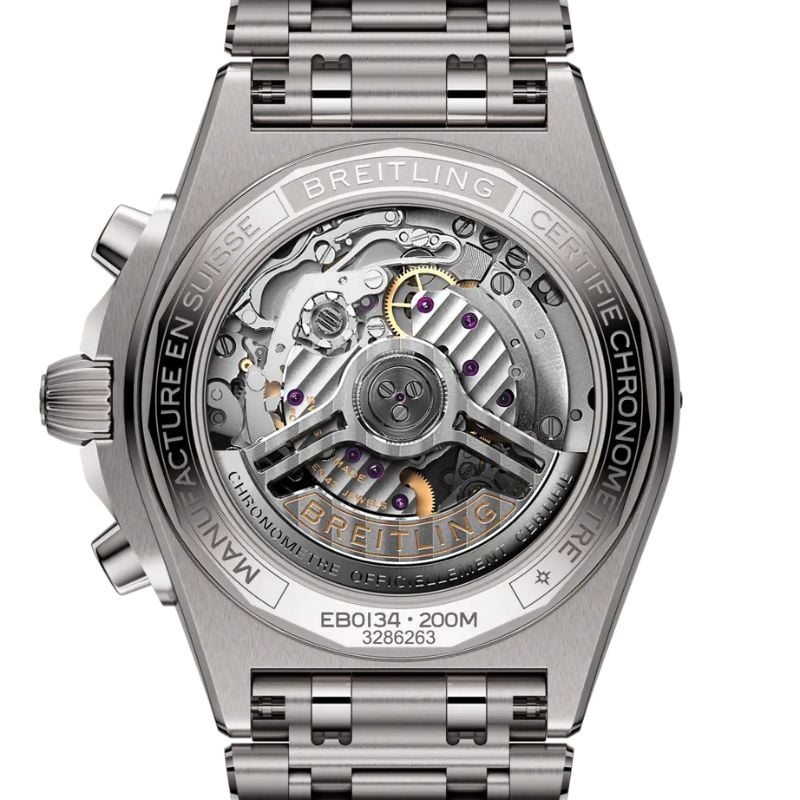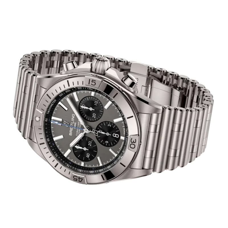 The Breitling Chronomat B01 42 EB0134101M1E1 watch has an elegant design, which displays a grey dial with three subdials. It features a titanium bracelet that ensures comfort and durability. It has a titanium case with a diameter of 42mm. It incorporates a self-winding mechanical movement with caliber Breitling 01 (Manufacture), which provides a power reserve of approximately 70 hours. It is an all-terrain watch for any activity, belonging to the Chronomat collection, which occupies an important place in the history of Breitling.