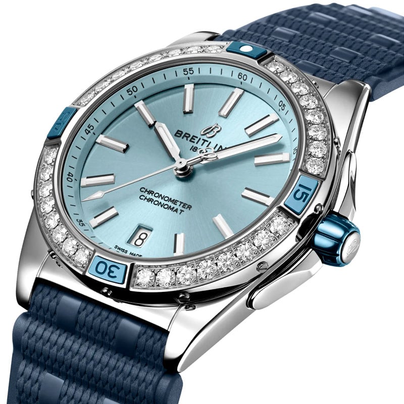 The Breitling Super Chronomat Automatic 38 A17356531C1S1 watch has an elegant design, which displays a blue dial. It features a blue rubber strap that ensures comfort and durability. It has a stainless steel case with a diameter of 38mm. It incorporates an automatic mechanical movement with Breitling caliber 17, which provides a power reserve of approximately 38 hours. It is an all-terrain watch for any activity, belonging to the Chronomat collection, which occupies an important place in the history of Breitling.
