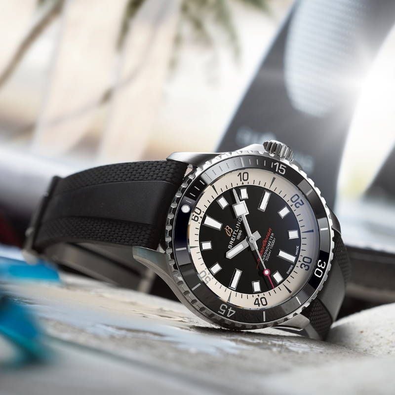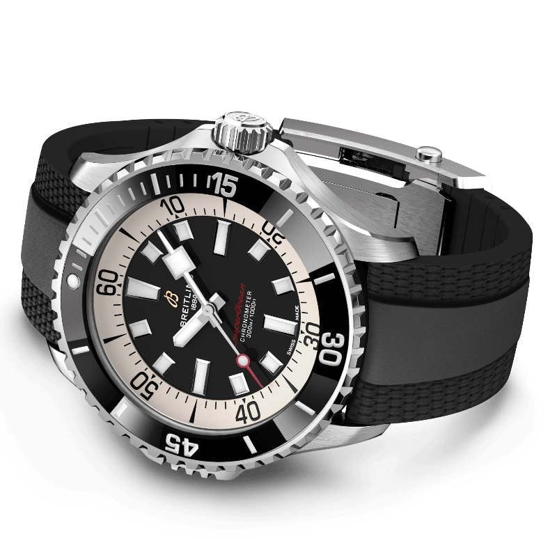 The Breitling Superocean Automatic 46 A17378211B1S1 watch has an elegant design, which displays a black and white dial. It features a black rubber strap that ensures comfort and durability. It has a stainless steel case with a diameter of 46mm. It incorporates an automatic mechanical movement with caliber Breitling 17, which provides a power reserve of approximately 38 hours. The combination of comfort and functionality along with a style that fuses the classic with the contemporary make this Superocean Automatic the perfect versatile watch to accompany you on any occasion.