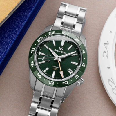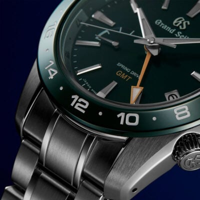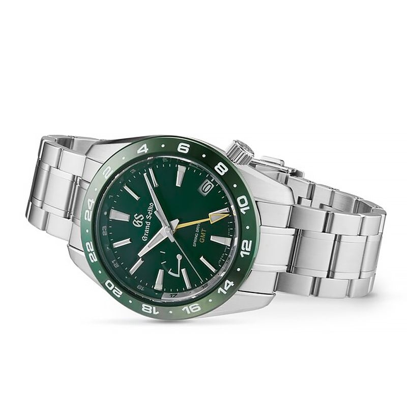 Grand Seiko Sport Spring Drive GMT SBGE257G watch. This watch belonging to the Grand Seiko Sport collection incorporates an automatic Spring Drive movement with caliber 9R66. The main functions featured in this model are the date window (day of the month) and dual time zone. The steel case is 40.5mm diameter and is water-resistant to 200m. The dial is green and the bracelet is stainless steel. An elegant watch ideal for any occasion.
