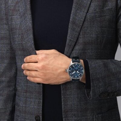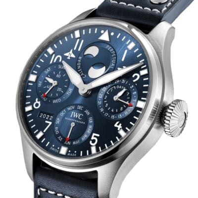 The IWC Big Pilot Perpetual Calendar IW503605 watch continues the long tradition of perpetual calendar watches from the Big Pilot collection developed during the 1980s by IWC’s former chief watchmaker, Kurt Klaus, The perpetual calendar takes into account the length of the various months and leap years. It will not need any adjustment until the year 2100. With the automatic Pellaton winding system, with ceramic components, it is virtually immune to wear and tear.