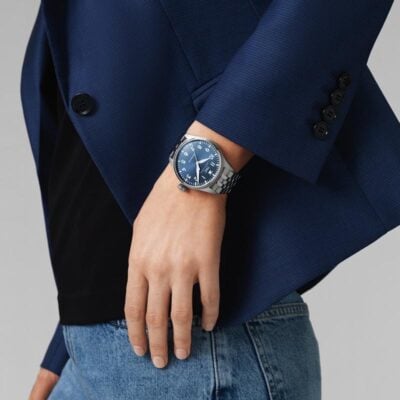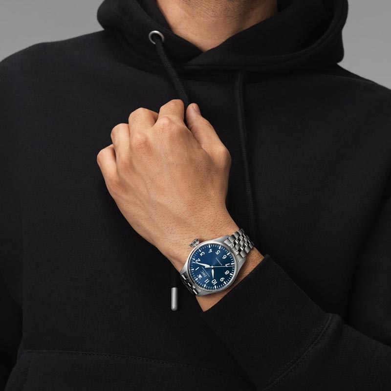 The IWC Big Pilot’s Watch 43 IW329304 watch features an elegant design, showcasing a blue dial. It incorporates a stainless steel bracelet that ensures comfort and durability. It has a stainless steel case with a diameter of 43mm. It has an automatic winding IWC-manufactured movement with 82100 Calibre, which provides a power reserve of 60 hours. Its combination of elegance and functionality make this Big Pilot’s Watch an outstanding icon of IWC Schaffhausen.