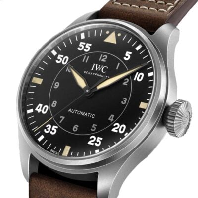 The IWC Big Pilot’s Watch 43 Spitfire IW329701 watch features an elegant design, showcasing a black dial. It incorporates a brown calfskin strap that ensures comfort and durability. It has a titanium case with a diameter of 43mm. It has an automatic winding IWC-manufactured movement with 82100 Calibre, which provides a power reserve of 60 hours. Its combination of elegance and functionality make this Big Pilot’s Watch an outstanding icon of IWC Schaffhausen.