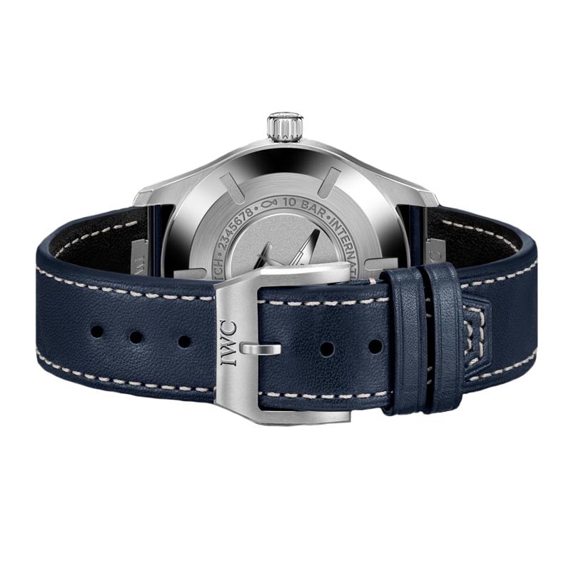 • Blue leather strap.