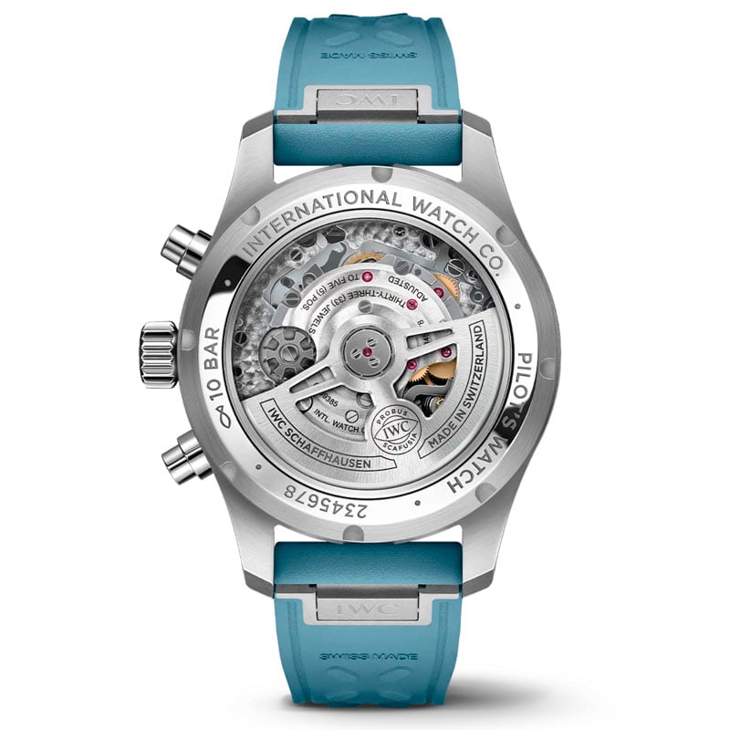 - Mechanism: IWC manufacture movement, self-winding. Frequency 28800 Vph (4 Hz). Caliber 69385.