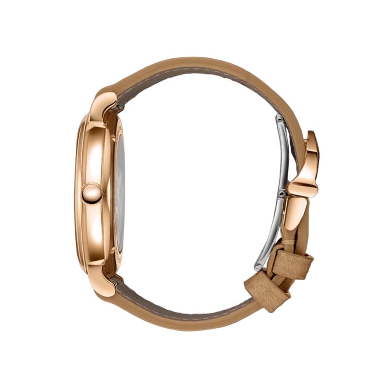 - Beige calfskin strap.