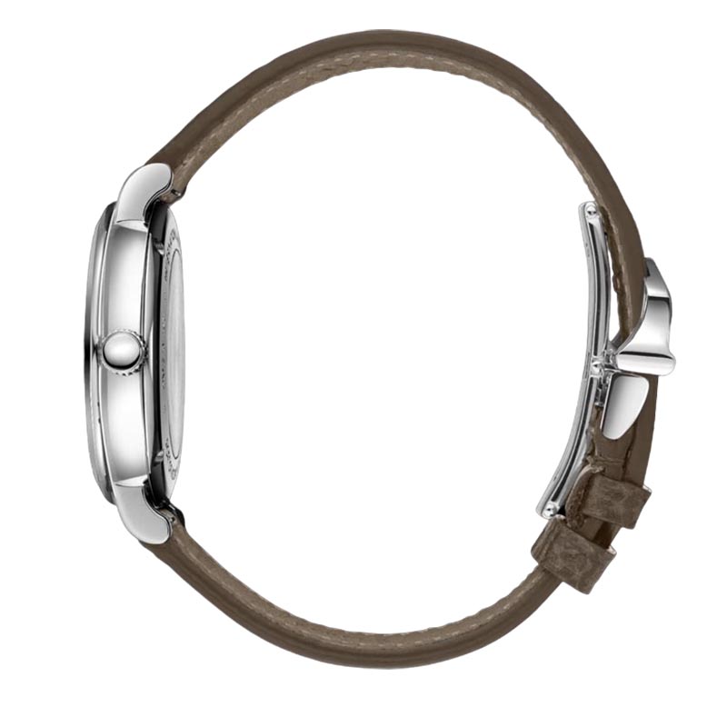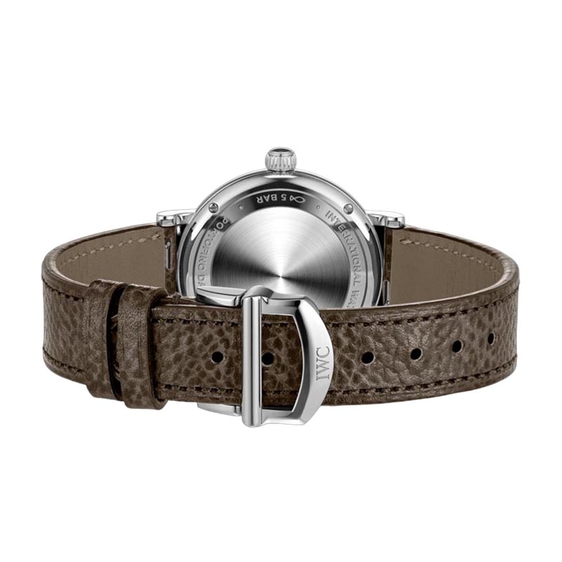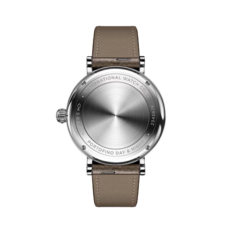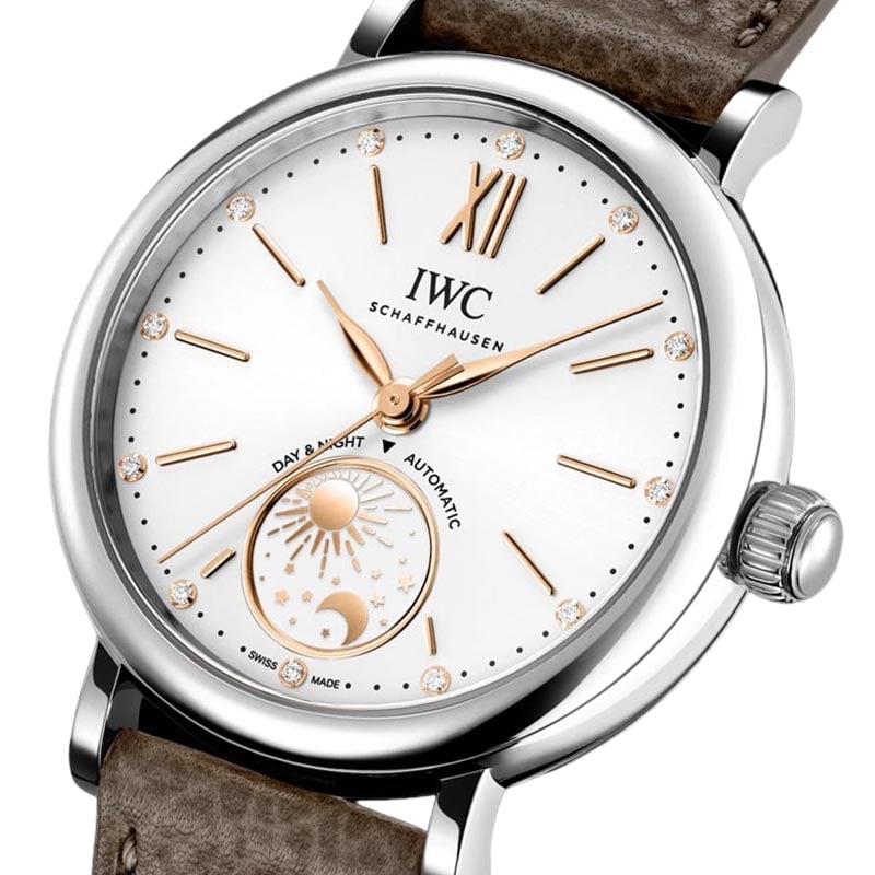 The IWC Portofino Automatic Day & Night 34 IW459801 watch features an elegant design, showcasing a silver plated dial. It incorporates a taupe calfskin strap that ensures comfort and durability. It has a stainless steel case with a diameter of 34mm. It has an automatic winding movement with 35180 Calibre, which provides a power reserve of 50 hours. Its combination of elegance and functionality make this Portofino an outstanding icon of IWC Schaffhausen.