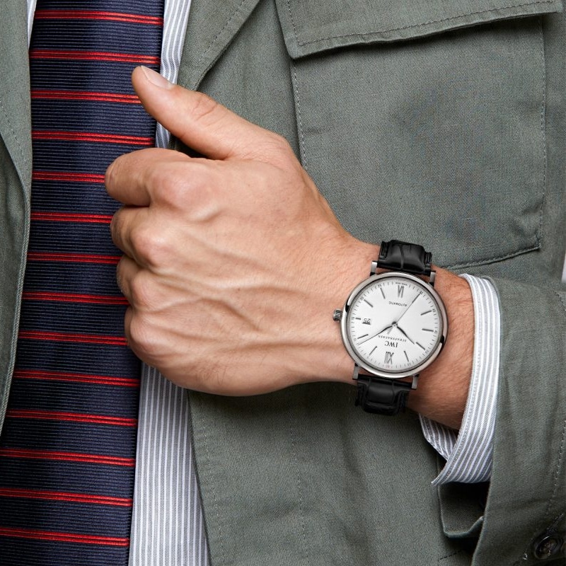 IWC Schaffhausen Portofino Automatic IW356501 watch. The design of the Portofino Chronograph, with pushers and chronograph indications in an elegant sporty style, is inspired by the 1960s. Stainless steel case, Automatic, self-winding, 40.0 mm diameter, Silver dial, Black alligator strap, 20.0 mm strap width. Made in Switzerland