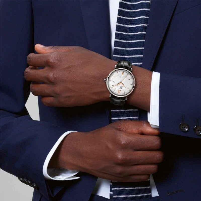 IWC Schaffhausen Portofino Automatic IW356517 watch. The design of the Portofino Chronograph, with pushers and chronograph indications in an elegant sporty style, is inspired by the 1960s. Stainless steel case, Automatic, self-winding, 40.0 mm diameter, Silver dial, Black alligator strap, 20.0 mm strap width. Made in Switzerland