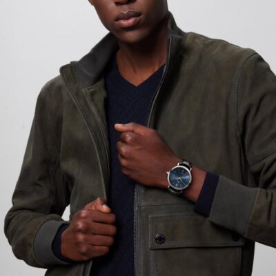 - Black leather strap.
