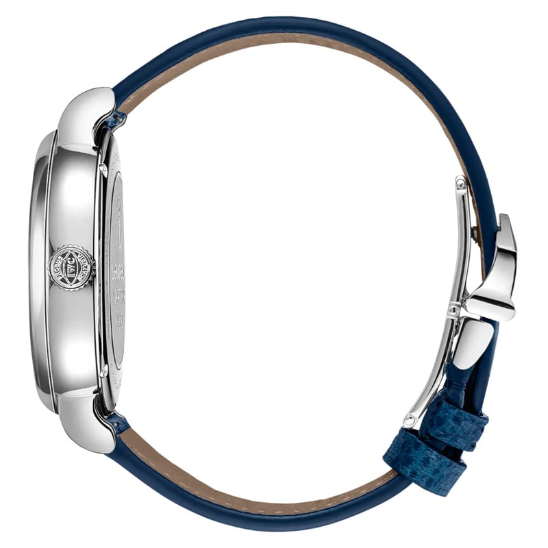 • Blue leather strap.