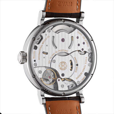 The IWC Portofino Hand-Wound Moon Phase IW516401 watch is notable for its elegant design, which showcases a silver dial. It has a stainless steel case with a diameter of 45mm. It features a dark brown alligator leather strap that ensures a perfect fit on the wrist and offers excellent wearing comfort. It incorporates a manual-winding IWC-manufactured movement with caliber 59800, which provides a power reserve of 192 hours. The combination of elegance and timeless character make this Portofino an outstanding timepiece from IWC Schaffhausen.
