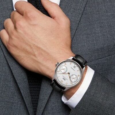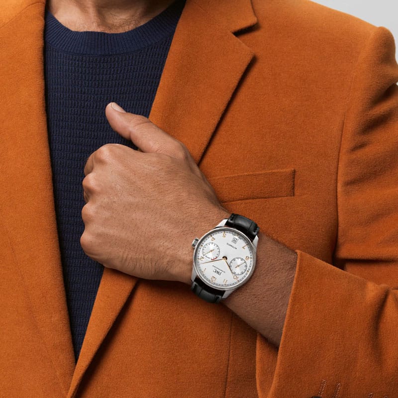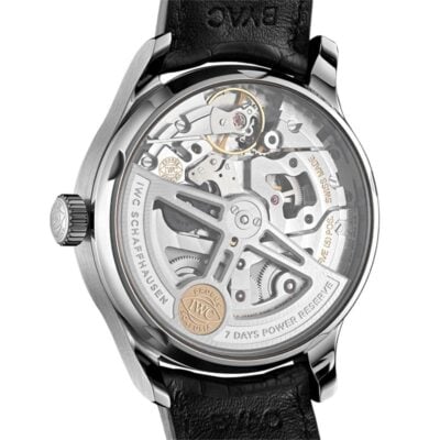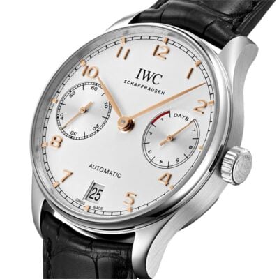 IWC Schaffhausen Portugieser Automatic IW500704 watch. Stainless steel. Automatic, Self-winding, 42.3 mm diameter, Black alligator leather strap, 22.0 mm strap width. Made in Switzerland