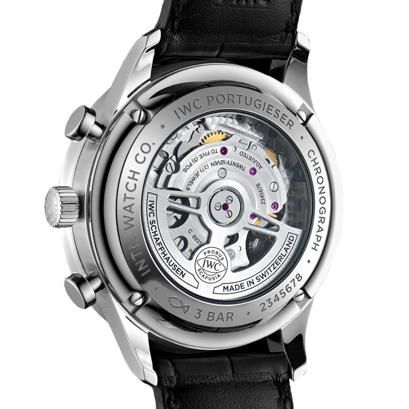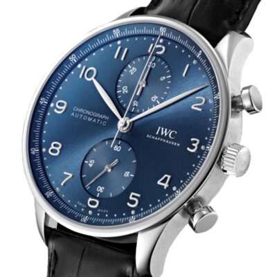The IWC Portugieser Chronograph IW371606 watch features a harmonious design, with its peripheral precision scale and bas-relief totalizers and has been the most coveted member of the Portugieser family since 1998. The robust and precise chronograph movement, with a classic column wheel design, is visible through a sapphire crystal case back.