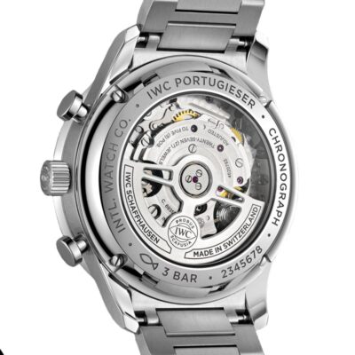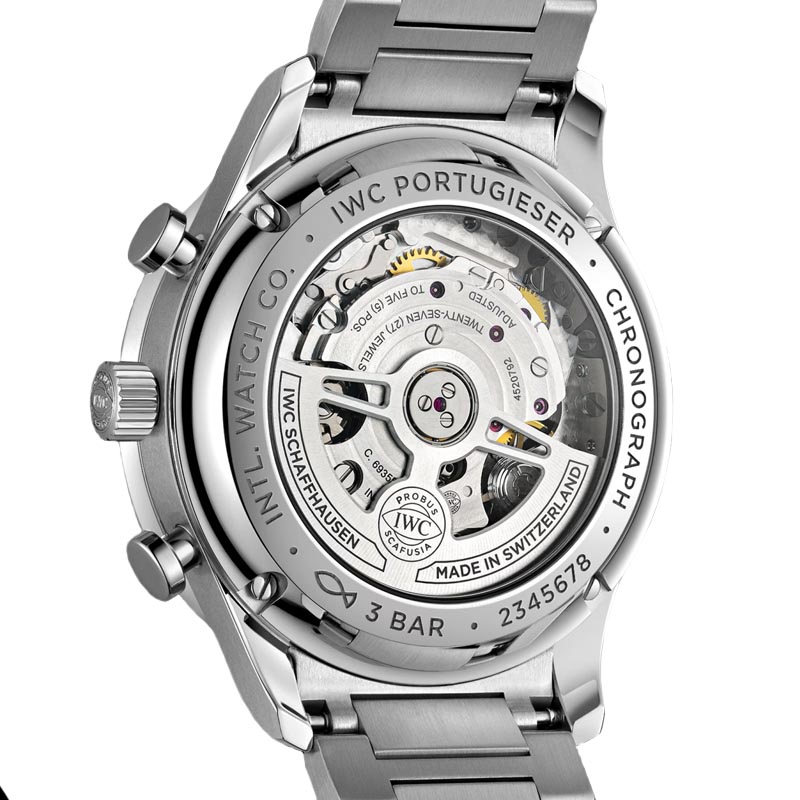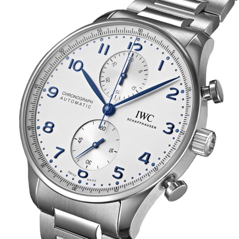 The IWC Portugieser Chronograph IW371617 watch features an elegant design, showcasing a silver plated dial. It incorporates a stainless steel bracelet that ensures comfort and durability. It has a stainless steel case with a diameter of 41mm. It has an automatic winding IWC-manufactured movement with 69355 Calibre, which provides a power reserve of 46 hours. Its combination of elegance and functionality make this Portugieser an outstanding icon of IWC Schaffhausen.