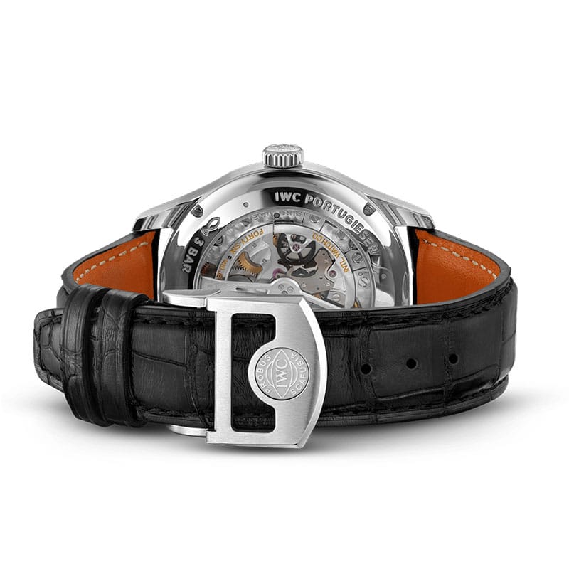 IWC Schaffhausen Portugieser Perpetual Calendar IW344203 watch. Stainless steel, Automatic, Automatic winding, 42.4 mm automatic, Santoni black alligator leather strap, 22.0 mm strap width. Made in Switzerland