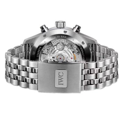 The IWC Pilot’s Watch Chronograph IW378004 watch stands out for its elegant design, which displays a blue dial with date and day window. It has a stainless steel case with a diameter of 43mm. It incorporates a stainless steel bracelet that ensures a perfect fit on the wrist and offers excellent wearing comfort. Its combination of elegance and functionality makes this Pilot’s Watch an outstanding icon of IWC Schaffhausen.