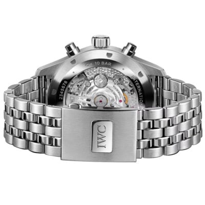 The IWC Pilot’s Watch Chronograph IW378006 watch stands out for its elegant design, which displays a green dial with date and day window. It has a stainless steel case with a diameter of 43mm. It incorporates a stainless steel bracelet that ensures a perfect fit on the wrist and offers excellent wearing comfort. Its combination of elegance and functionality makes this Pilot’s Watch an outstanding icon of IWC Schaffhausen.