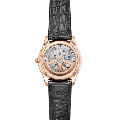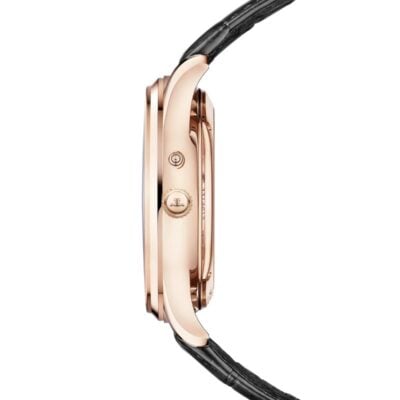 The Jaeger-LeCoultre Master Ultra Thin Tourbillon Moon Q169242J watch features an elegant design, showcasing a beige dial. It incorporates a black alligator leather strap that ensures comfort and durability. It has a pink gold case with a diameter of 41,5mm. It has an automatic winding movement with calibre 983, which provides a power reserve of 45 hours. The Master Ultra Thin Collection is the perfect union of traditional complications, thinness and sophistication, bringing together its contemporary technical mastery with an elegant, classically understated aesthetic.