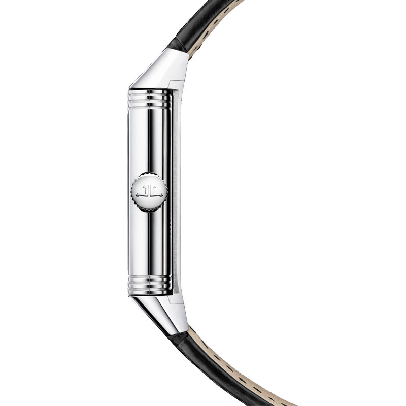 Jaeger-LeCoultre Reverso Tribute Enamel Monet “The Grand Canal” Q39334M5 watch. In its 45.6 mm x 27.4 mm white gold case, the Reverso Tribute focuses on reversible time. It incorporates a manual-winding movement with caliber 822A, which provides a power reserve of approximately 42 hours. It has a guilloché dial with a green enameled wave design. The reverse side features Monet’s masterpiece reproduced in miniature painting.