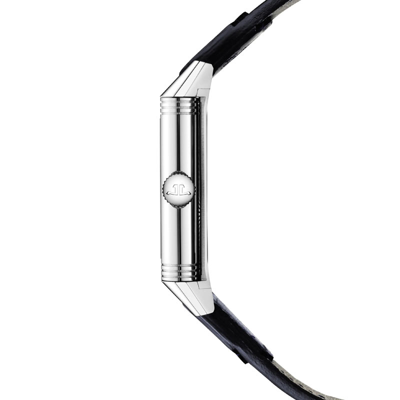 Jaeger-LeCoultre Reverso Tribute Monoface Q397848J watch. The Reverso Classic Medium Thin watch, powered by the hand-wound Jaeger-LeCoultre caliber 822A/2, invites you to inscribe part of your story on the customizable back of its dial: a first name, a motif, a birthday, initials… a detail that will make it an inseparable companion. The watch, like its black alligator leather strap, blends in with the person who wears it on their wrist. Choosing a Reverso watch is never a trivial decision, but the desire to show who you are.