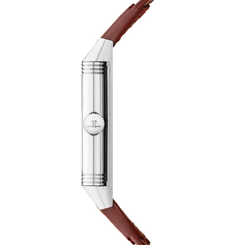 Jaeger-LeCoultre Reverso Tribute Monoface Q7168420 watch. In its 7.56 mm thick stainless steel case, the Reverso Tribute Monoface focuses on reversible time. It incorporates a manual-winding movement with caliber 822A, which provides a power reserve of approximately 42 hours. The silver-gray dial and Dauphines hands evoke the Art Deco-inspired aesthetic codes of the first Reverso created in 1931.
