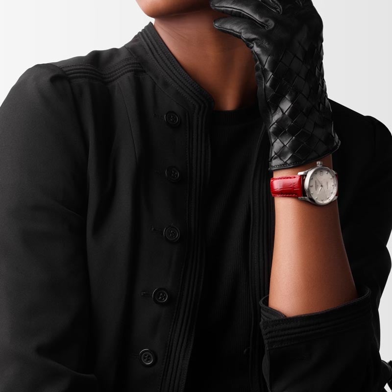 - White mother-of-pearl dial.