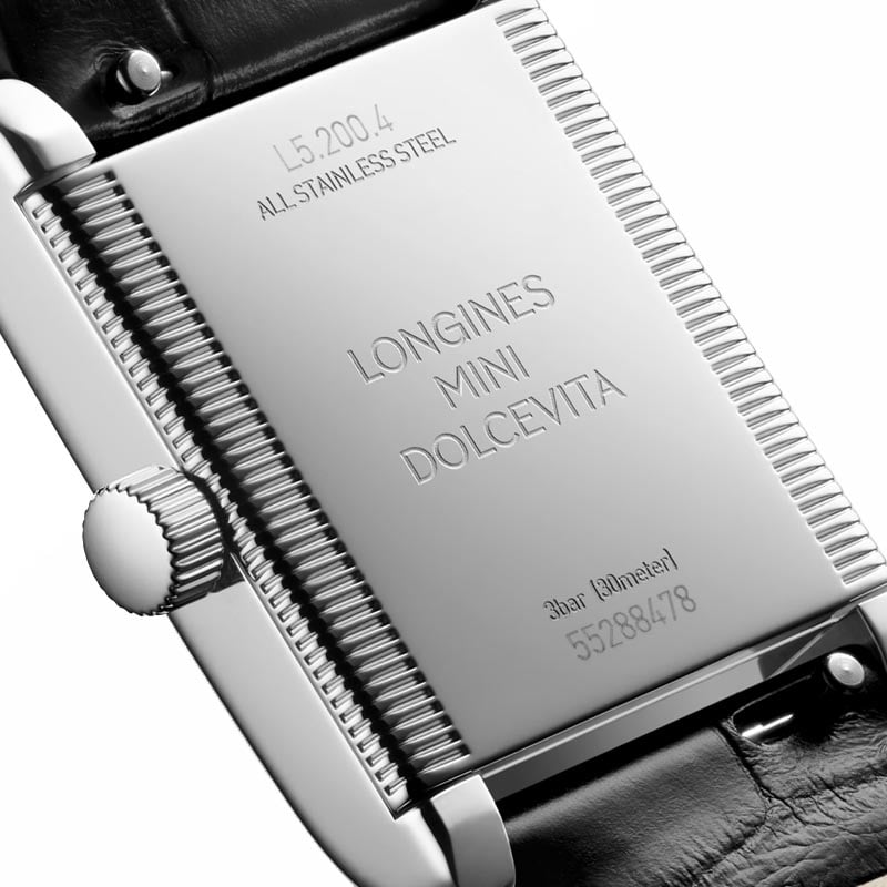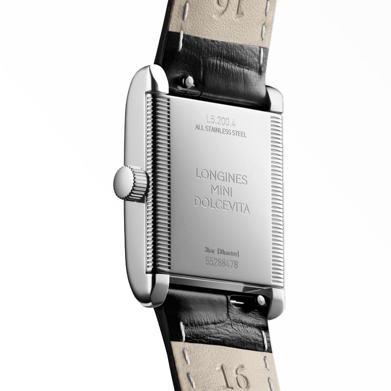 The Longines MIni Dolcevita L52004752 watch is a small but mighty masterpiece that exquisitely expresses, in equal parts, the quiet luxury and contemporary elegance of Longines. Reference L5.200.4.75.2 features a silver rectangular Roman dial that draws attention to its uncompromising elegance.