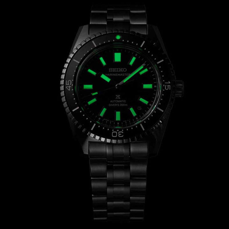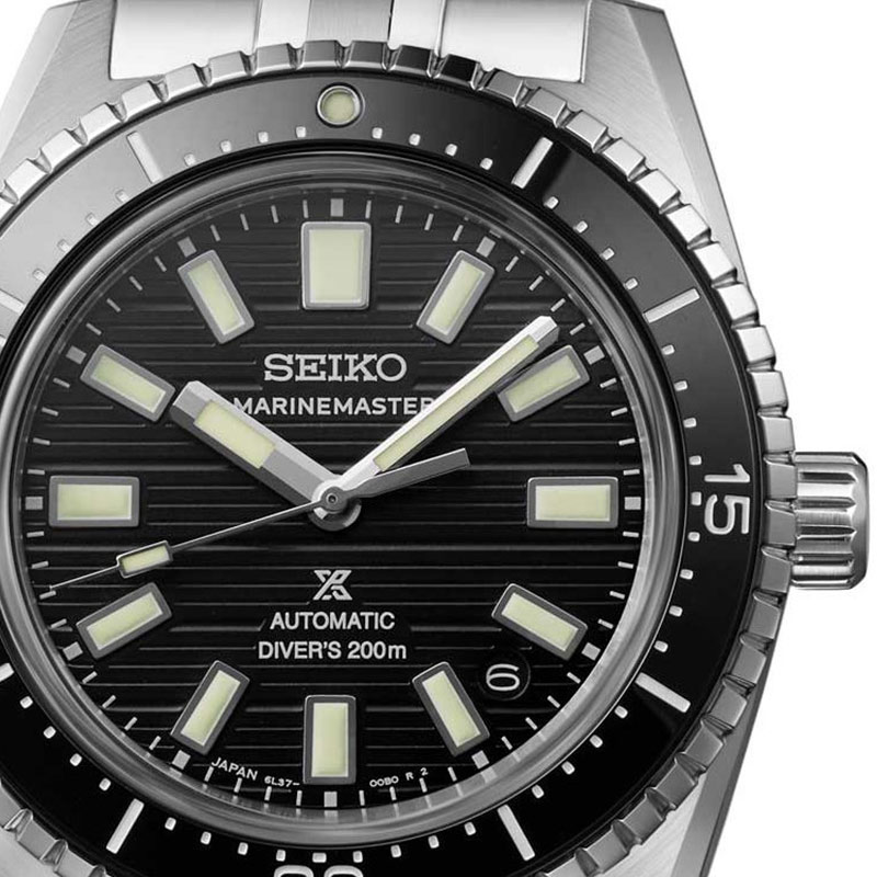 Seiko Prospex Marinemaster SJE101J1 watch. Seiko Prospex offers a completely natural harmony. 39.5mm steel case. Black dial. Automatic movement. Caliber 6L37. Functions: Hours, minutes, seconds indicator, date. Stainless steel bracelet.