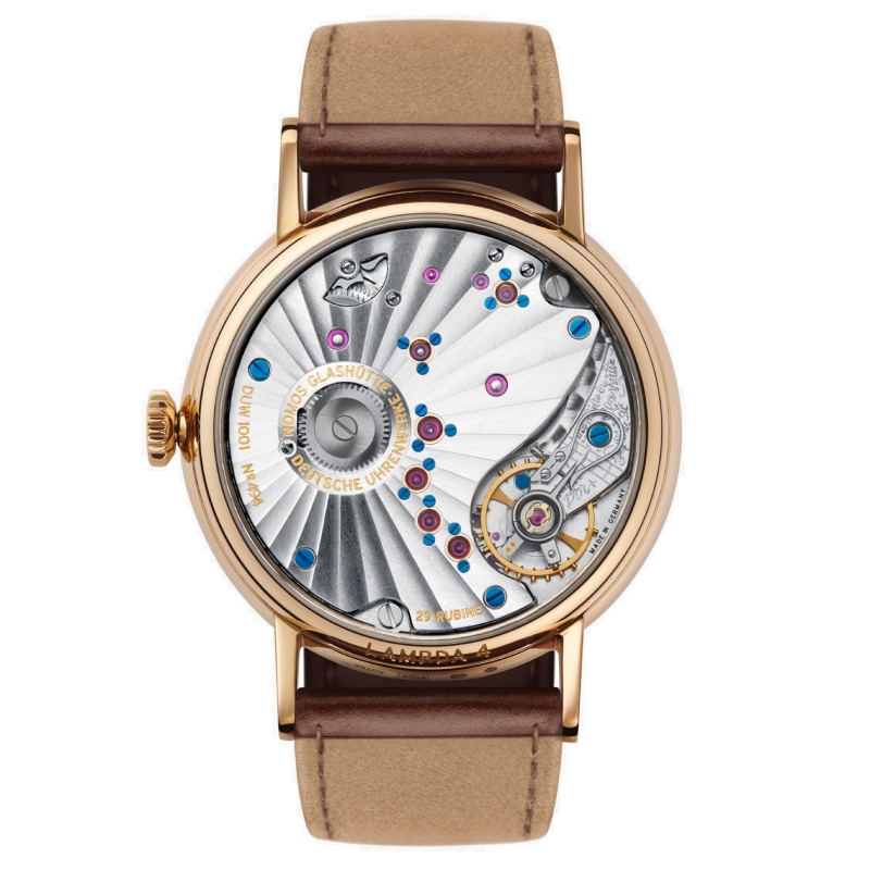 The NOMOS Glashütte Lambda 39 Velvet Black ref. 954 watch with the black velvet dial is the perfect backdrop for the delicate hands to dance in perfect harmony, framed by the 18K gold case. Behind the scenes, the superb DUW 1001 hand-wound caliber ensures that everything runs perfectly and on time with the utmost precision.