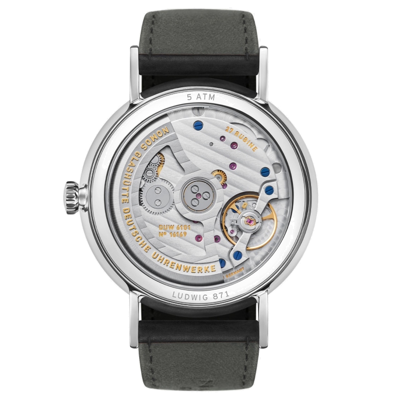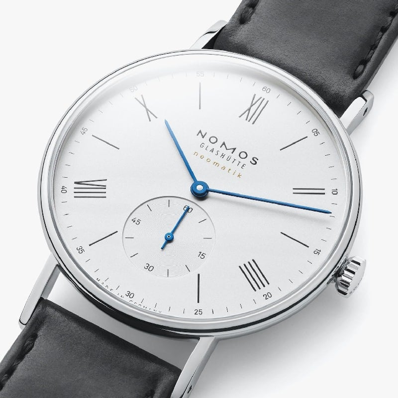The NOMOS Glashütte Ludwig Neomatik 39 ref. 250 watch has a diameter of 39 millimeters. The Roman numerals on the white silver dial are complemented by a sober Arabic numeral minute track typical of neomatik and transform the traditional Ludwig into a watch for contemporary wrists.