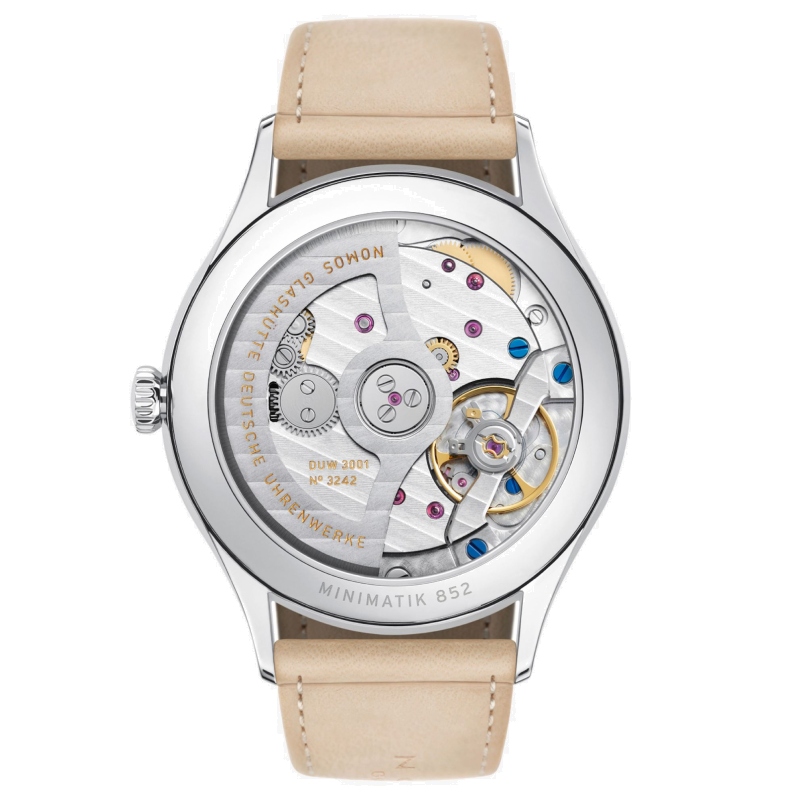 The NOMOS Glashütte Minimatik Champagne ref. 1204 watch champagne color provides a touch of joy that will attract all eyes. After all, such a fine, precise and beautiful automatic watch is something exceptional in the world of fine watchmaking. It has bold neon-colored details on the dial and a shining example of German engineering inside with its DUW 3001 automatic caliber.