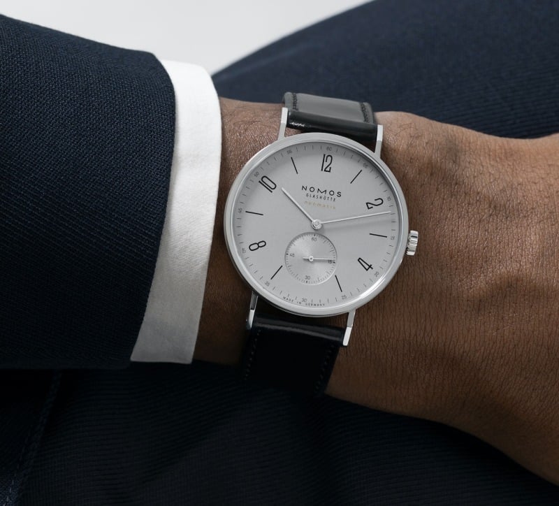 The NOMOS GLASHÜTTE Tangente Neomatik 39 Platinum Gray ref. 143 watch is for men who appreciate simplicity and precision. It is an elegant companion for everyday work. The platinum gray dial features refined rhodium-plated hands and Arabic numerals with finials.