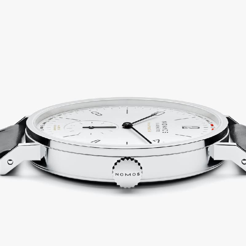 The NOMOS Glashütte Tangente Neomatik 41 Update ref. 180 watch represents a major update for this model with its circular date. Two red indicators located on the edge of the dial indicate the date of the day.