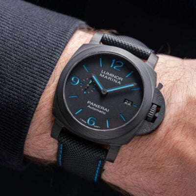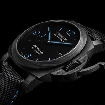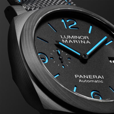 Panerai Luminor Marina Carbotech™ PAM02661 watch with automatic movement. Carbotech case 44 mm diameter, water-resistant to 300 m. Black dial with rubber strap.
