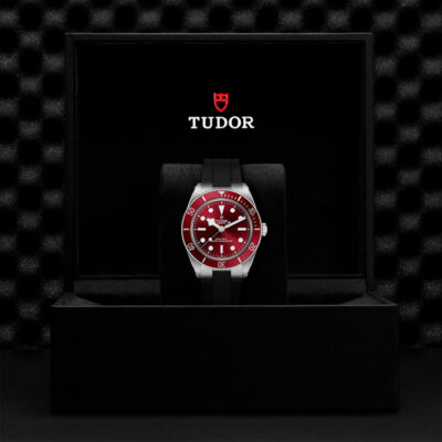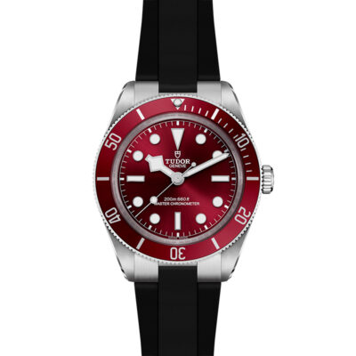 The Tudor Black Bay 58 M7939A1A0RU-0003 watch has an elegant design, which displays a burgundy dial. It features a black rubber strap that ensures comfort and durability. It has a stainless steel case with a diameter of 39mm. It incorporates a self-winding mechanical movement with bidirectional rotor system with Manufacture Calibre MT5400-U, which provides a power reserve of 65 hours. The Black Bay 58 is named after the year in which the first TUDOR divers’ watch waterproof to 200 metres was introduced.