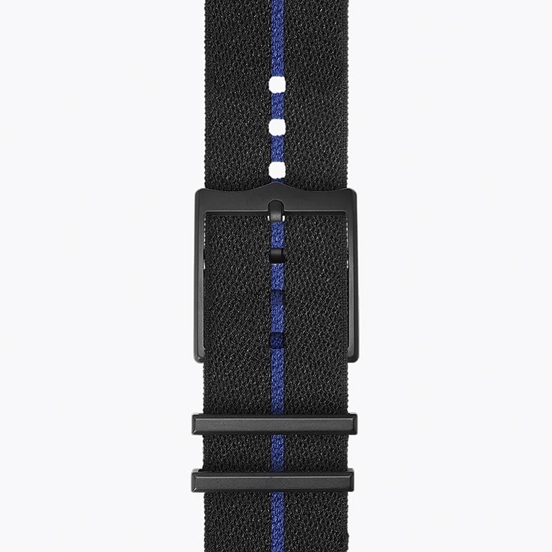 - Black leather and rubber hybrid strap.