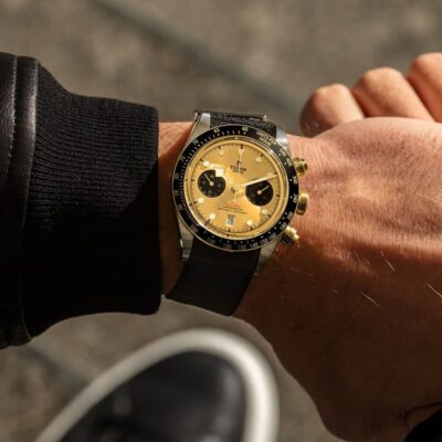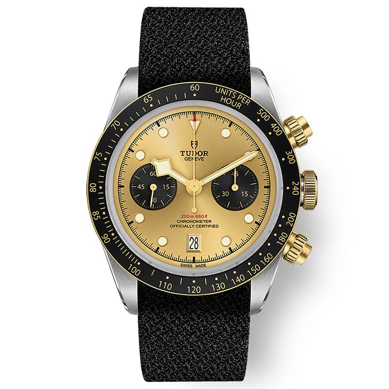 Tudor Black Bay Chrono S&G M79363N-0006 automatic movement watch with chronograph function. 41 mm diameter steel and gold (blued) case, water-resistant to 200 m.