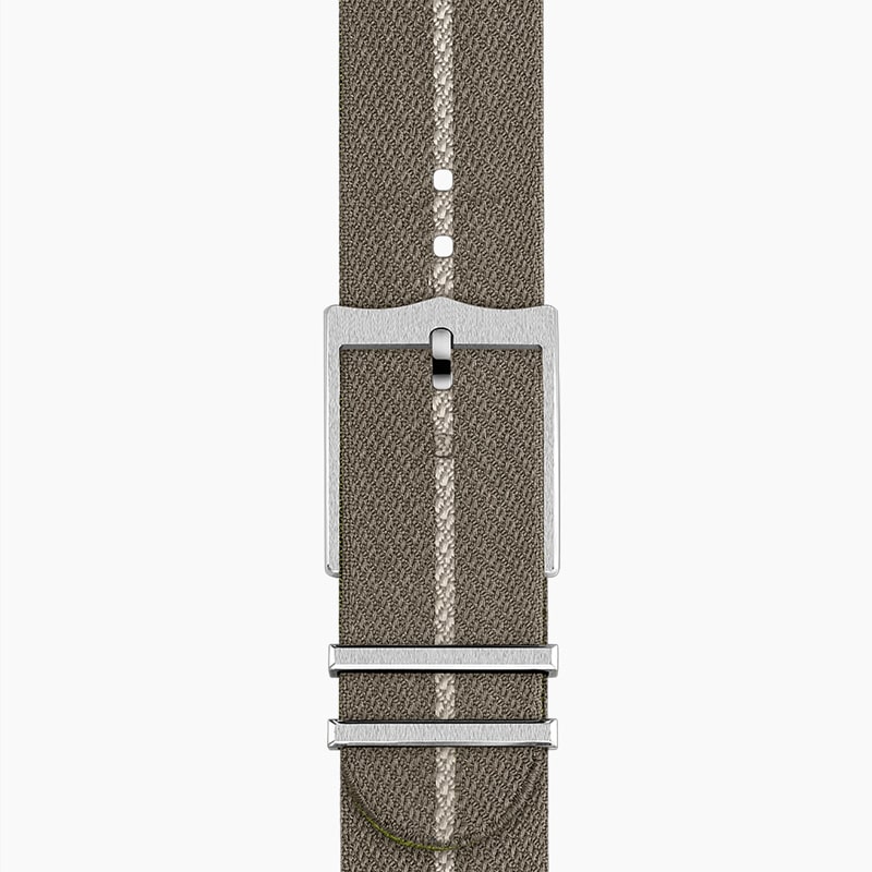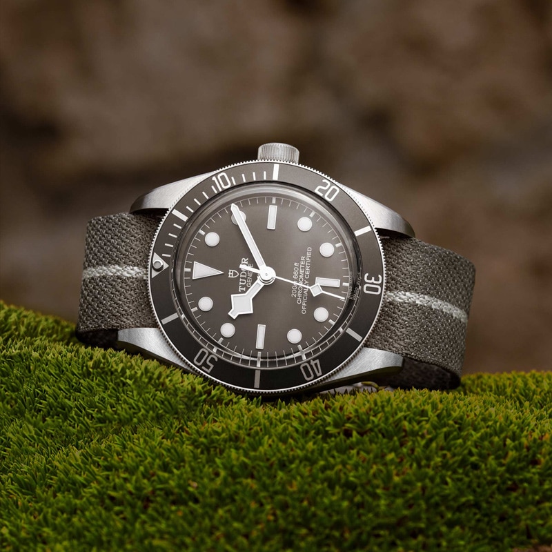 Tudor Black Bay Fifty-Eight 925 M79010SG-0002 watch with automatic movement. 39 mm diameter silver case, water-resistant to 200 m. Grey dial and taupe fabric strap.