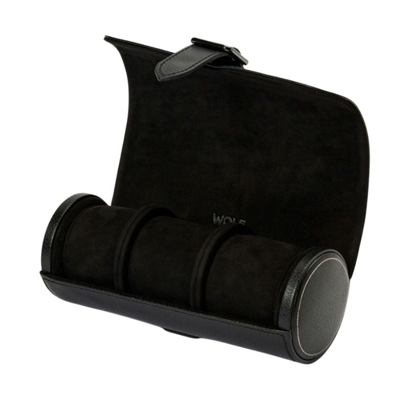 El WOLF British Racing Rollo de Relojes Triple 792902 cuenta con un diseño elegante color negro. Con el exterior de cuero, puede albergar en su interior hasta 3 relojes e incluye un pequeño joyero escondido con tres compartimentos.