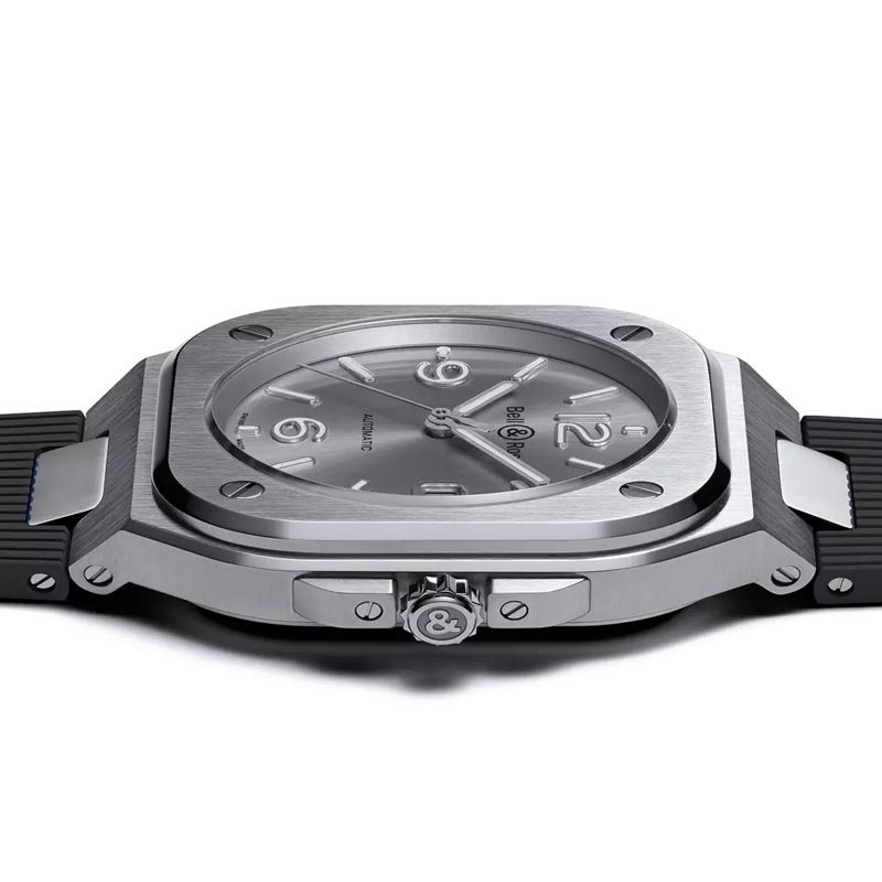 El reloj Bell&Ross BR 05 Grey Steel BR05A-GR-ST-SRB tiene finos y atractivos acabados que atraen miradas. Su caja de 40 mm es angular. Las superficies satinadas son perfectamente lisas; además, los biseles pulidos enfatizan y refuerzan sus volúmenes. Este instrumento, lleno de carácter, emana fuerza y elegancia.