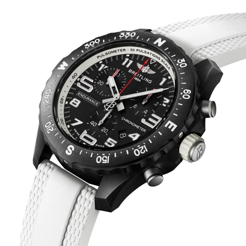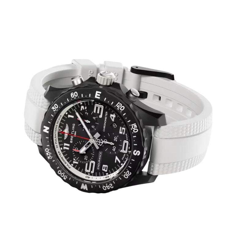 El reloj Breitling Endurance Pro 38 X83310A71B1S1 cuenta con un diseño deportivo, que exhibe una esfera negra con tres subesferas. Presenta una correa de caucho blanca que garantiza confort y durabilidad. Tiene una caja de Breitlight® con un diámetro de 38mm. Incorpora un movimiento SuperQuartz™ termocompensado con calibre Breitling 83. Su ligereza y carácter deportivo, combinado con un estilo informal, hacen de este Endurance Pro el reloj deportivo perfecto para acompañarle en cualquier aventura.