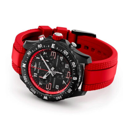 El  reloj Breitling Endurance Pro 38 X83310D91B2S1 cuenta con un diseño elegante, que exhibe una esfera negra y roja con tres subesferas negras. La referencia X83310D91B2S1 incorpora una correa de caucho roja que garantiza confort y durabilidad. Su ligereza y carácter deportivo, combinado con un estilo informal, hacen de este Endurance Pro el reloj deportivo perfecto para acompañarle en cualquier aventura.