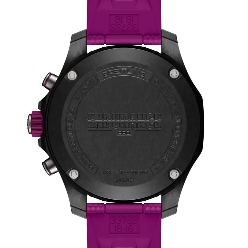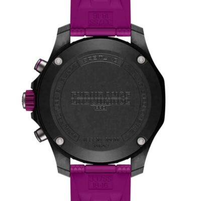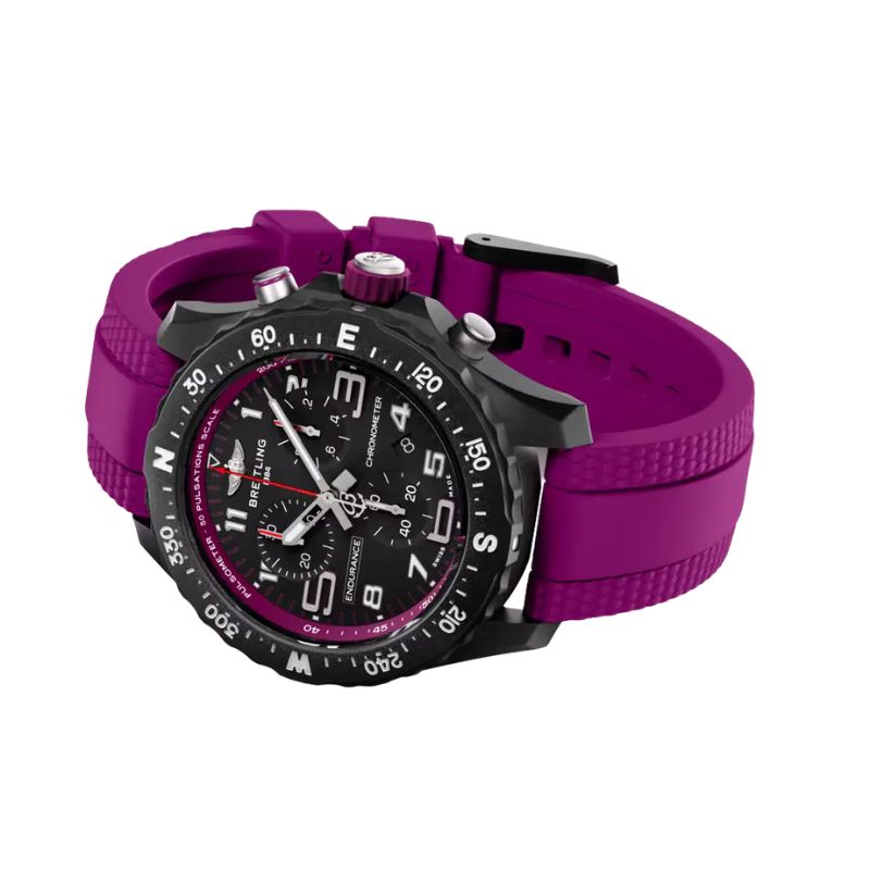 El reloj Breitling Endurance Pro 38 X83310F61B1S1 cuenta con un diseño deportivo, que exhibe una esfera negra con tres subesferas. Presenta una correa de caucho morada que garantiza confort y durabilidad. Tiene una caja de Breitlight® con un diámetro de 38mm. Incorpora un movimiento SuperQuartz™ termocompensado con calibre Breitling 83. Su ligereza y carácter deportivo, combinado con un estilo informal, hacen de este Endurance Pro el reloj deportivo perfecto para acompañarle en cualquier aventura.